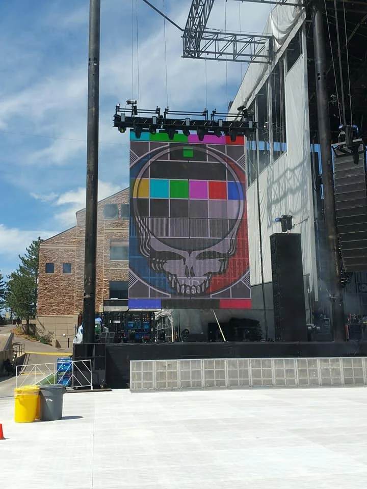 Recently for the two nights of Dead & Company's shows at Boulder, CO’s Folsom Field, PBTV brought in two side screens to serve as I-Mag. PBTV provided the two 30’ high x 20’ wide video screens made up of digiLED Mirage MC7 blow-through screens which were rigged on either side of the stage. With its 12% transparency, the high-resolution digiLED Mirage MC7 screens can deal with higher speed winds over any other high-resolution LED video screen. PBTV will again be with Dead & Company providing the I-Mag screens for the band’s show at NYC’s Citi Field on June 24. Brent Jones, who was the PBTV LED Technician on site in Boulder, will again be at the New York City show.